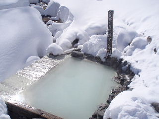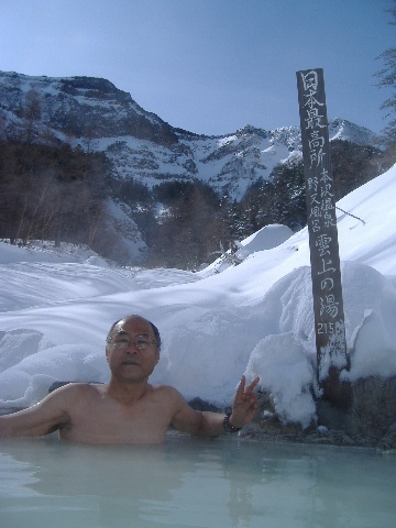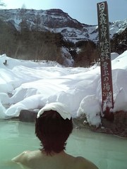 | 前回は足湯で我慢でしたが、今回はラッキーでした。 大満足でございました♪ この日気温はマイナス3度くらい。湯温はぬるめでしたが、風もなく強い陽射しで、それほど寒さは感じませんでした。緊張で必死だったのかもしれません(笑) |