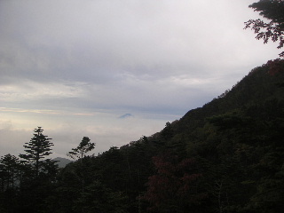 テント場からは富士山や奥秩父の山が雲海の上に浮かんでいた。金峰山の五丈岩もはっきり分かる。 周りの人たちは6時くらいから次々に赤岳、権現岳へと向かっていった。6時半、私たちが最後の出発。 |