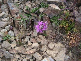 | 咲き残りのタカネナデシコ。ヤマハハコやトリカブトなどもまだ少し咲き残っていた。それでも心安らぐ。 | |