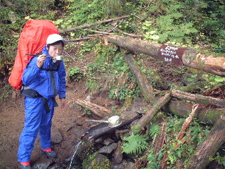 | 12:00 途中の水場。乙女の水とあらば、飲まねば! ん?なぜかトシちゃんも飲んでます(関係ないか!(^^ゞ |