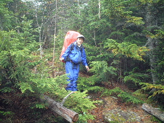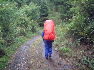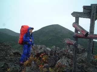 | 青年小屋に戻り、しっかり雨装備をして出発。西岳へ向かう。 | |