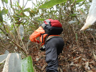 戻ればいいものをそのまま左へ藪こぎ、通常ルートへ出ようとしますが・・
