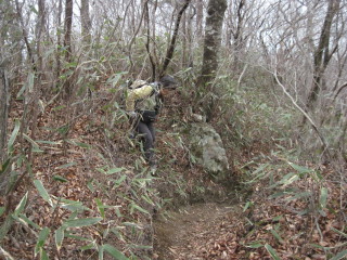 途中尾根の下に登山者の声を聞き、姿を確認しつつ、我等は藪こぎで汚れながらようやく登山道に合流。同じような人がいるのか、踏み跡が続いていたのでした^_^; |