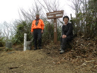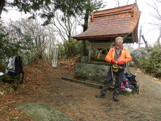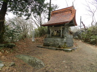 神社奥社と山頂標柱がありましたが周囲は見通し悪いので少し先へ行ってみることに。 |