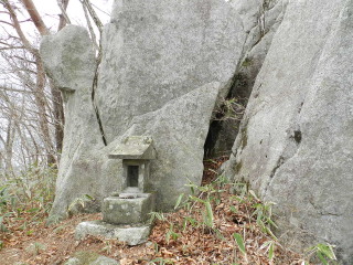 少し下りた所にも小さな祠。大岩が奥宮の門番のように見えます^_^; |