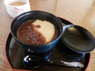 | そばがき汁粉とミックス餅(えごまとウグイス黄粉) |