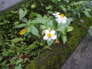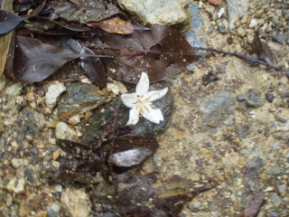 | 白花の落花・・何だろう?周囲にも、見上げても同じ花が無くて分かりませんでした。 | ![]() |