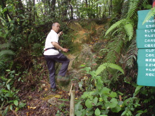 | いきなりトカゲが出てきてビックリ。これはシリケンイモリというのか? そういえばこの辺りハブはいるのかな・・・と周囲を見回しながら進んで行きました。 翌日行った沖縄ワールドのハブ館で聞いた話では沖縄本土でももちろんハブはおり、住民も毎年二十数名の方が噛まれる被害に遭っているそうです。知らぬが仏とはこの時の我らでした。 |