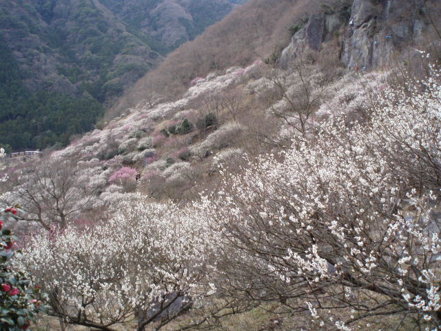 | 幕山の裾野に広がる梅林。全体ではまだ七分咲きと書いてありましたが、既に見ごろを迎えています。とてもきれい! 見ごろ情報はコチラへ(2007年情報) |