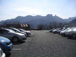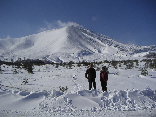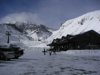 鬼押出しは除雪され、観光バスが一台と普通乗用車数台が停まっていた。韓国人か中国人らしき人たち。母はまだ沢山歩く元気はないからと、鬼押出しの散策はせず、遠目に眺めてから峠の湯温泉へと向かった。 信越本線の横川駅近くにある峠の湯は500円。施設は立派で露天風呂、休憩室などあり、食事もできる。駐車場からは裏妙義のボコボコした山容が見える。露天風呂からも今回は男湯から眺められたようだ(一週間ごとに男湯、女湯が変わるらしい)。裏妙義はまだ登っていないがこうして眺めるとすごいなぁと思う。表妙義から眺めたのと同様の感想だ。 翌日は草津温泉へ。車を走らせているとロープウェイ山麓駅まで行くことができた。この日も快晴で展望が素晴らしい。本白根山(草津白根山)山頂が間近に眺められた。娘がひと滑りしている間、私達はレストハウス内でコーヒーを飲みながら眺めていた。あっという間に雲が流れ雪が降り出し、山頂方面が見えなくなった。娘は雪の中滑り下りているのだろう。 娘もレストハウスで一休みしてから、今度は娘が下までスノボーで滑り下りていき、私達は再び車で下った。車の方が早いだろうと途中見えるところで待ち娘の姿を捜したが、間もなく携帯が鳴った。娘からだ。もう下にいるという。思わず三人で笑ってしまった。スノボーの方が早いんだぁ〜(@.@)