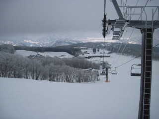 今度は2人乗りのリフト。やはり空いていますので一人ずつ乗っていきます。 |
