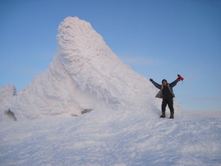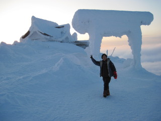 | 外は強風でしたから、もう一度山頂を踏み、モンスターを見ながら下山と決定。そして温泉にでも行こうと話していました。 | ![]() |