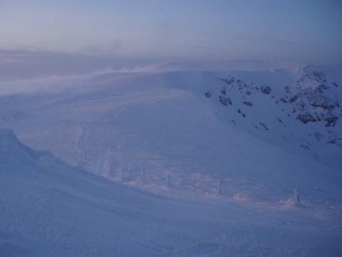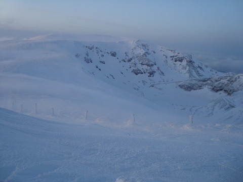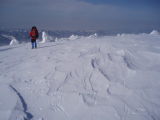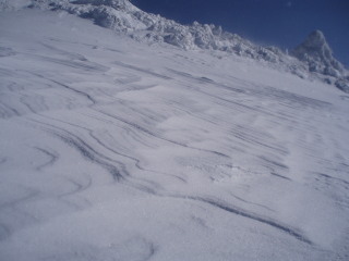 | 強風が西から吹き上げ、雪面を舞っていきます。 | ![]() |
