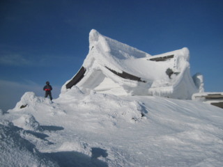 | 久々のテント泊。蔵王ライザワールドスキー場からリフト2基乗り継いで高度を稼ぎ、刈田岳から屏風岳を目指しましたが、強風とホワイトアウトで刈田岳避難小屋泊に変更。初日夕方から翌日にかけ晴れ、周辺を散策してモンスター見物しつつ戯れてきました。モンスターは少し前の雨でだいぶ小さくなったようです。 | ||