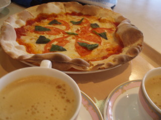 ココに来たら石窯焼のイタリアピザを食べていきましょうか♪ マルゲリータLサイズ(¥1800)とコーヒー(@\350)で至福のひと時。 |